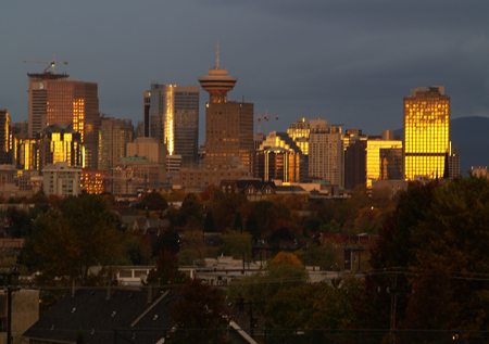 Working from home today, I went to grab a coffee and noticed that with the grey clouds overhead, and the sun coming in through a break at the right angle from the east – the city looked like it was made of silver and gold. Had to grab the camera then. (The light is not coming out of the buildings, it is reflected on the buildings).