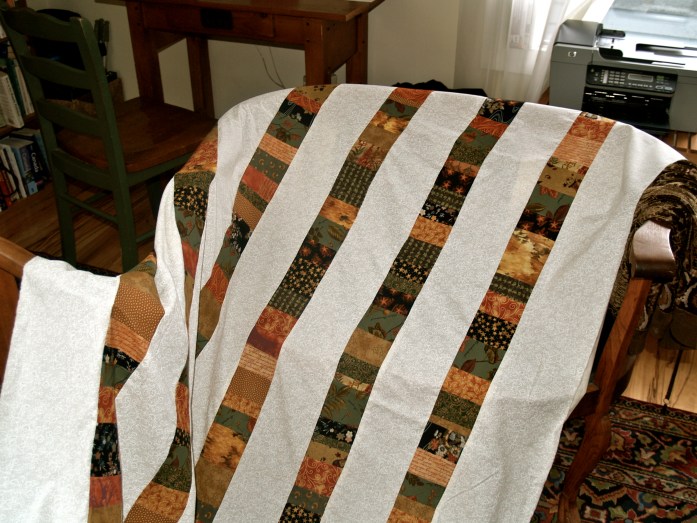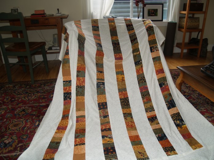 Don’t have much to say today because it’s a running around kindof day – so here are some pictures of a quilt top I finished last night. A double-sized made from scraps from other projects (except the white sashing). Now I’ve got to baste and quilt the damned thing!