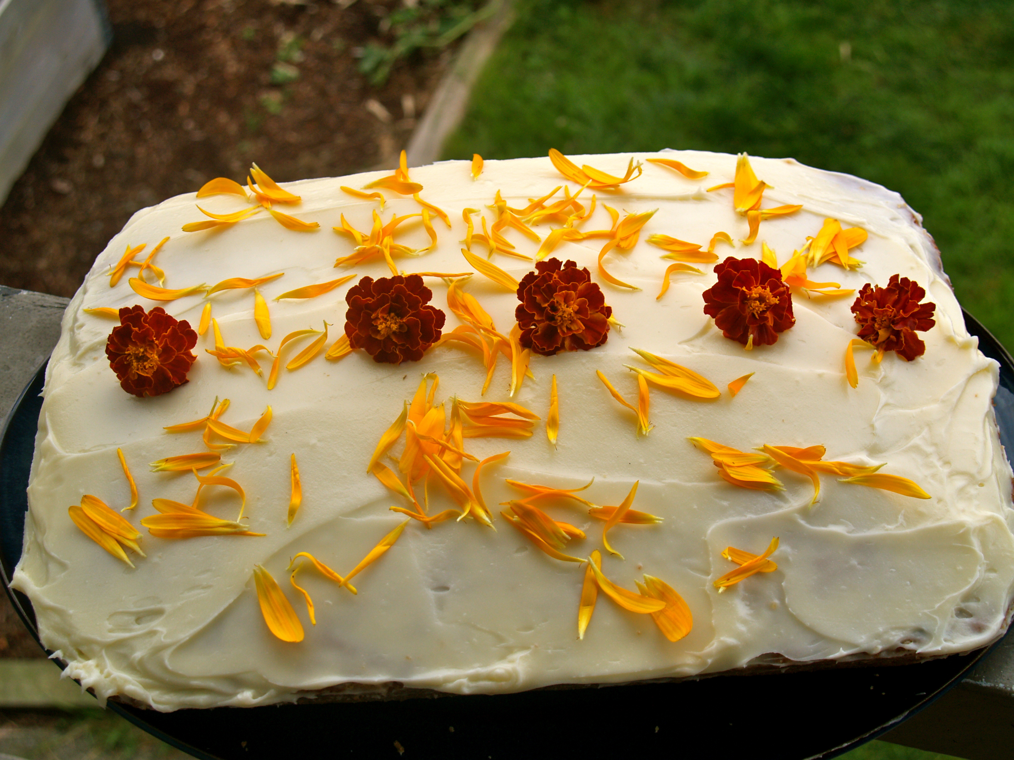 !Plus! my zucchini cake decorated with calendula and marigolds went over pretty well too: