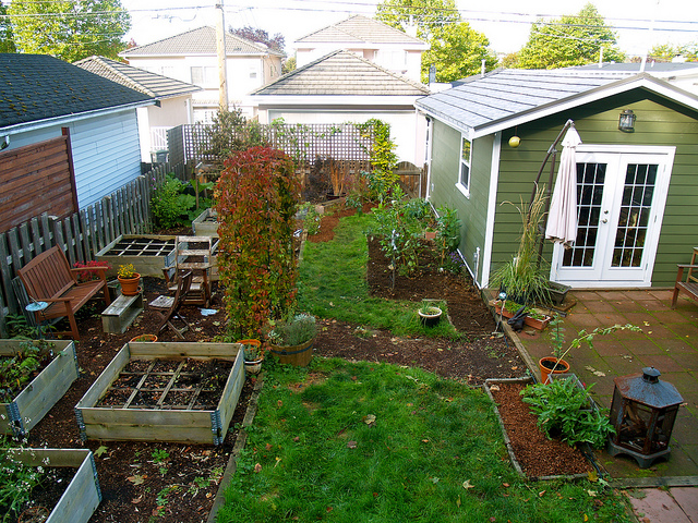 We’ve got a ton of leaves out front now, and are investing in a leaf-vaccum and shredder which will make for some easy mulching of these back boxes as the fall turns into winter. You can see from these photos that some of our beds are still in need of a top-up to be truly ready for next spring – and the leaves will be a big help on that front. With the rains coming in this week, I suspect it will be awhile before I can get a picture of our backyard that I love as much as this one – with the fall colour in and everything still green. The mud-days are coming, followed by the frozen-days…. and I’ve still got so much to do before that happens! (See all of last week’s garden photos on flickr.