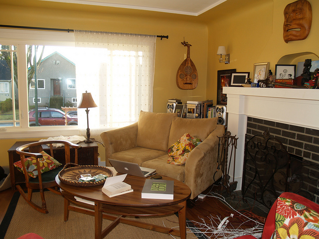 The stunning transformation? Take a look at that lovely yellow and the sheer curtains in place of the Ikea panels that we bought when we moved into the house!