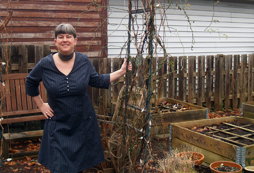 Ignore the goofy look on my face and behold the first dress for 2012. A total frustration to put together, but I learned a lot in the process as I re-did facings and set the sleeves no less than five times. On the other hand, I discovered that this pattern fits me particularly well, and I made a dress that’s a bit different for me in length and style. And it’s flattering to my shape! I’m planning another iteration of this dress in red wool crepe with short sleeves, so all the frustration of this version should be worth it when I whip the next one up in no time flat.