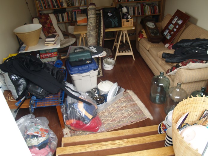 As much as I have had some anxiety about this process (what if I want this/that/etc. again?), I have mostly enjoyed the act of purging – and B. has been super-awesome as well – he’s bravely dumped tons of personal papers, academic articles, DVDs (all burned to our central storage drive) in addition to sorting out basement bits and pieces and moving stuff around.