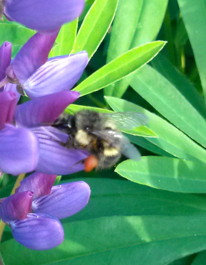 My attempt to capture a bee photo in the Garibaldi school garden on my phone…. what was so remarkable about this was 1) how many bees there were in the lupin patch and 2) that you could see their full pollen sacs (that orange blob) so easily. I love this patch of beauty right around the corner from my home!