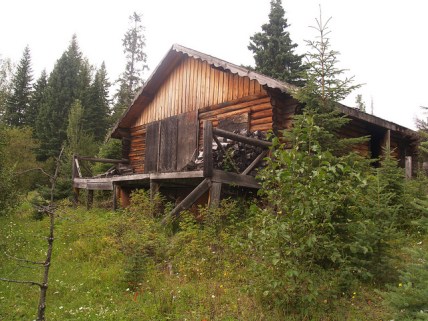 When our friends arrived two days later, we took them there as well and they also could see the potential of the building (which is trashed, but the main log structure definitely salvageable and solid) and the land for a group of dedicated folks who wanted a summer refuge, a hunting cabin, an interior basecamp for un-coastal activities, a place to drop a fishing line from – etc. On further investigation it was clear (to our friend Kyla at least) that the previous industrial use of the spot was as some kind of water-extracting business and that a spring must exist high-up on the property that someone had once tried to exploit.