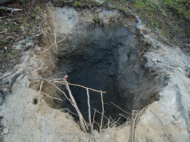 This hole was dug by our backhoe and is much larger than it looks in the picture. It is also close to seven feet deep. We will never fill this hole. Even my father approved. It is a very good hole.