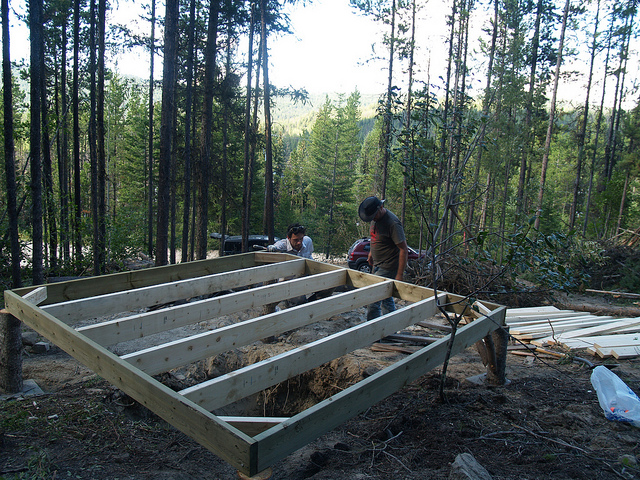 When I returned a few hours later, the framing for the main outhouse and structure was finished, as was the outhouse bench. Again, we need plywood to cover the bench, plus some metal sheathing where the hole is so we don’t get bad smells leaching into the wood.