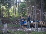 I went to Link Lake with our two land partners Leung and Dave this weekend. While I confined myself to measuring and holding the occasional post in place, they actually got some work done and built us a frame for a woodshed. When we go back later this month we’ll get a roof on there and get to filling it!
