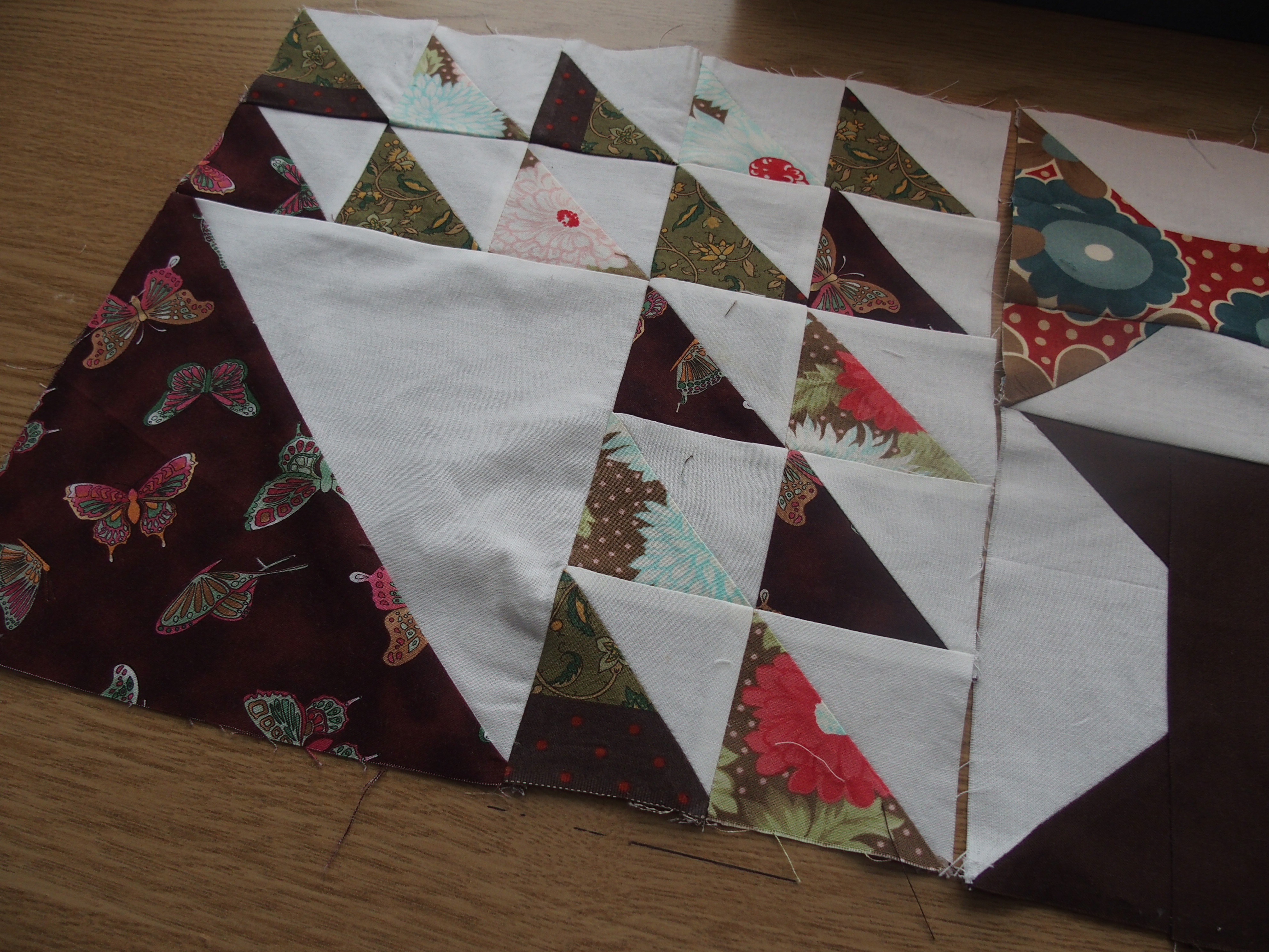 Fortunately I have now figured out this piecing foot, though it is so hard to see the quarter-inch plate edge that I need my glasses to use it! (Confession – I need my glasses for pretty much anything close-up these days).
