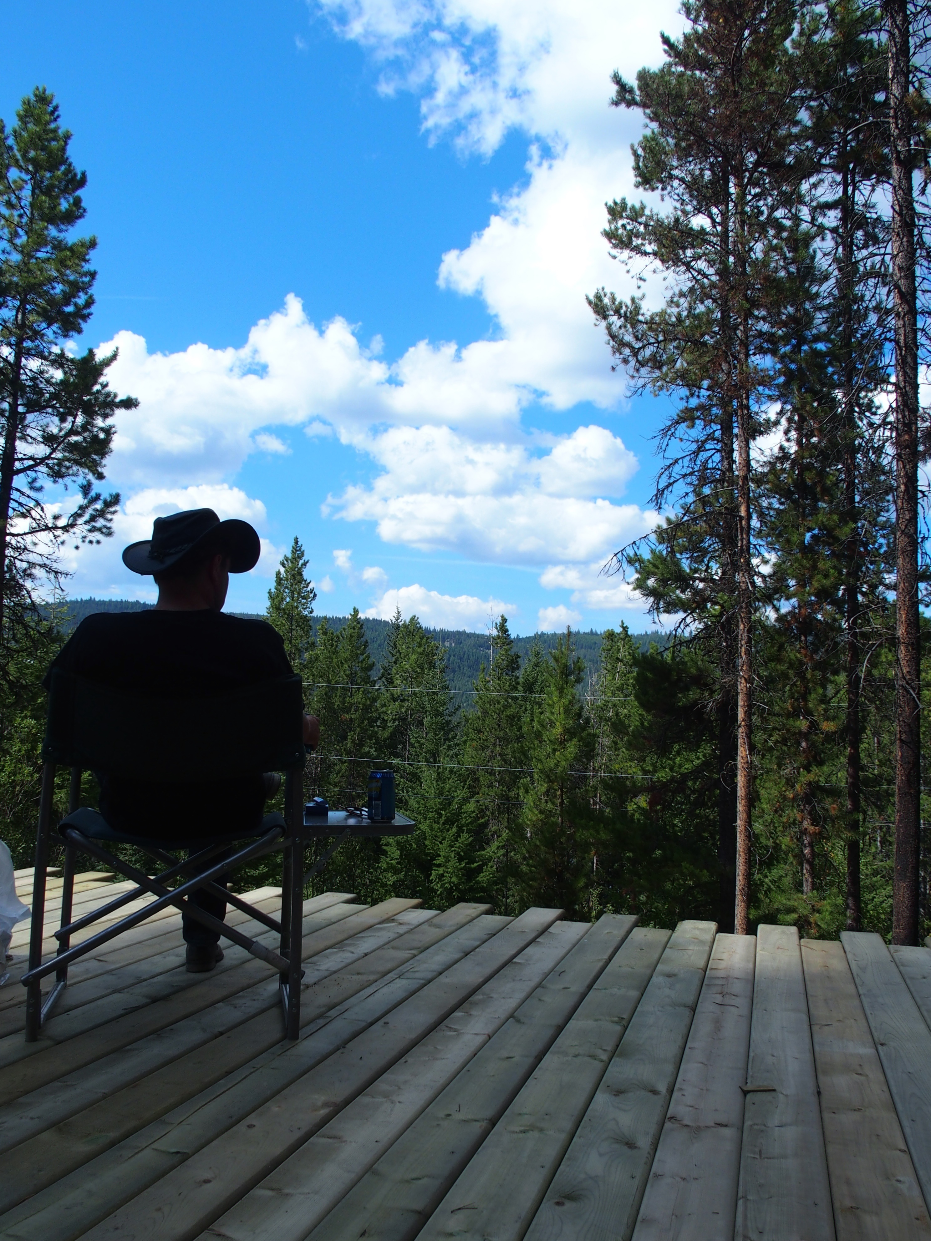 We pitched our tent on the deck (which sits 8 feet off the ground owing to land slope) and used the cabin side to set up the camp stove. It was our first night sleeping on the land together – our first night in our almost-cabin.