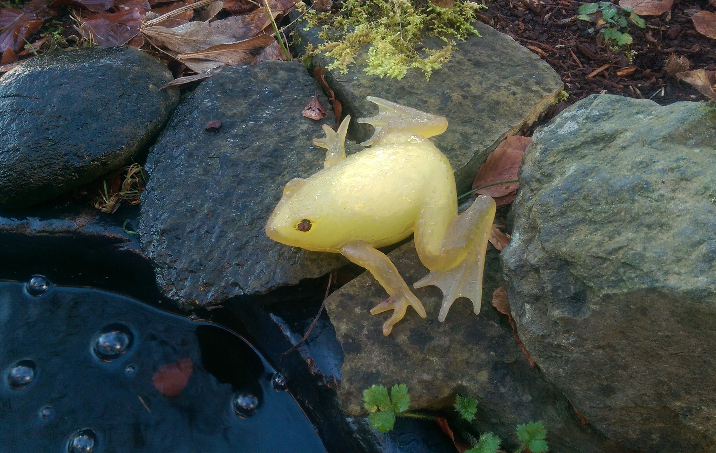 Someone left a frog on the edge of our front yard pond and for a moment this morning, my partner thought it was a real frog. Hooray! Isn’t that a little bit of fun 🙂 The pond is very small, but it is a fascination to the little kids on walks with their moms – probably it’s the turtle fountain that shoots water – but it could just be that our yard feels cozy and inviting. I want to do a lot more planting in it come this spring – plus add some more little features. The front yard has been a long work in progress – I sometimes wish I had a few thousand dollars to throw at it and just get it done – but instead I pick away at it a bit year by year. I see that one of the houses on our block is slated to be torn down and I’ve got a mind to knock on the door and ask if I can dig up the plants in the front yard to fill mine with.