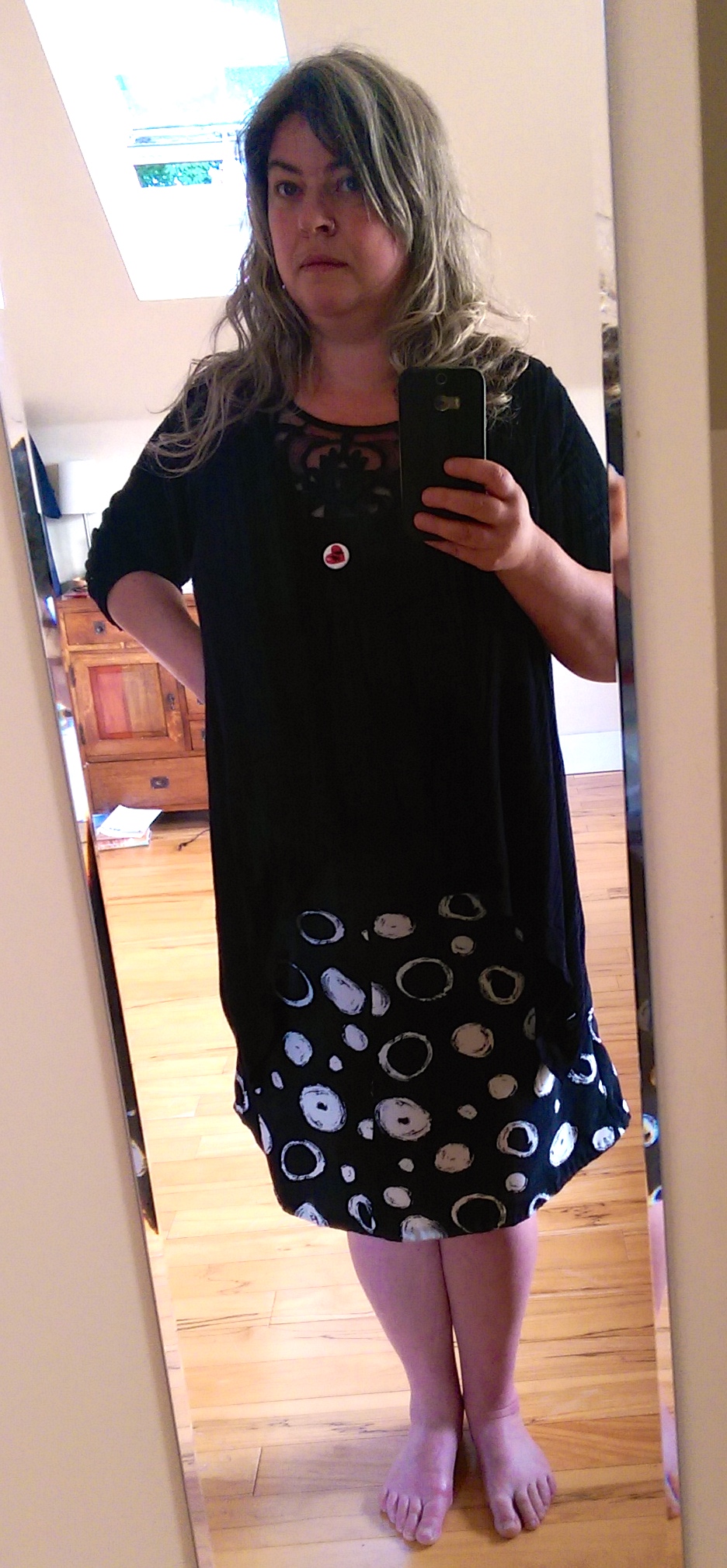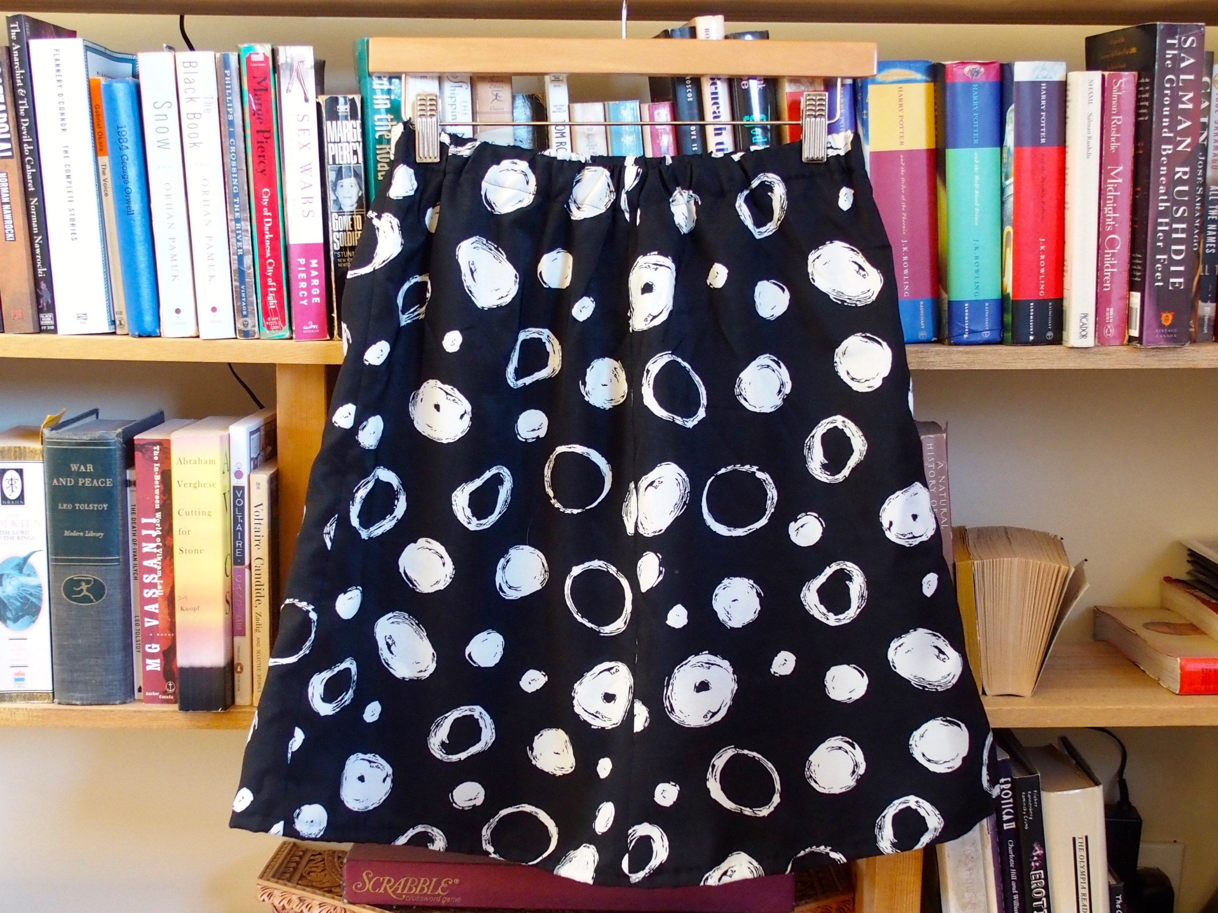 Following on my post about fall sewing and unfinished objects – I took a sick day on Tuesday because I was wiped out from insomnia, family, and a sore throat – which gave me time to Invisible-hem this skirt that I found at the bottom of my UFO basket last week. I don’t know why I abandoned it in the first place because the fabric is a decent weight for a skirt, the elastic band isn’t turned, and it fits me well (though I have lost weight, so perhaps it was too tight when I made it?) I think I started this more than two years ago, so I’m glad to have it on the hanger in my closet as opposed to wadded up in a ball somewhere.
