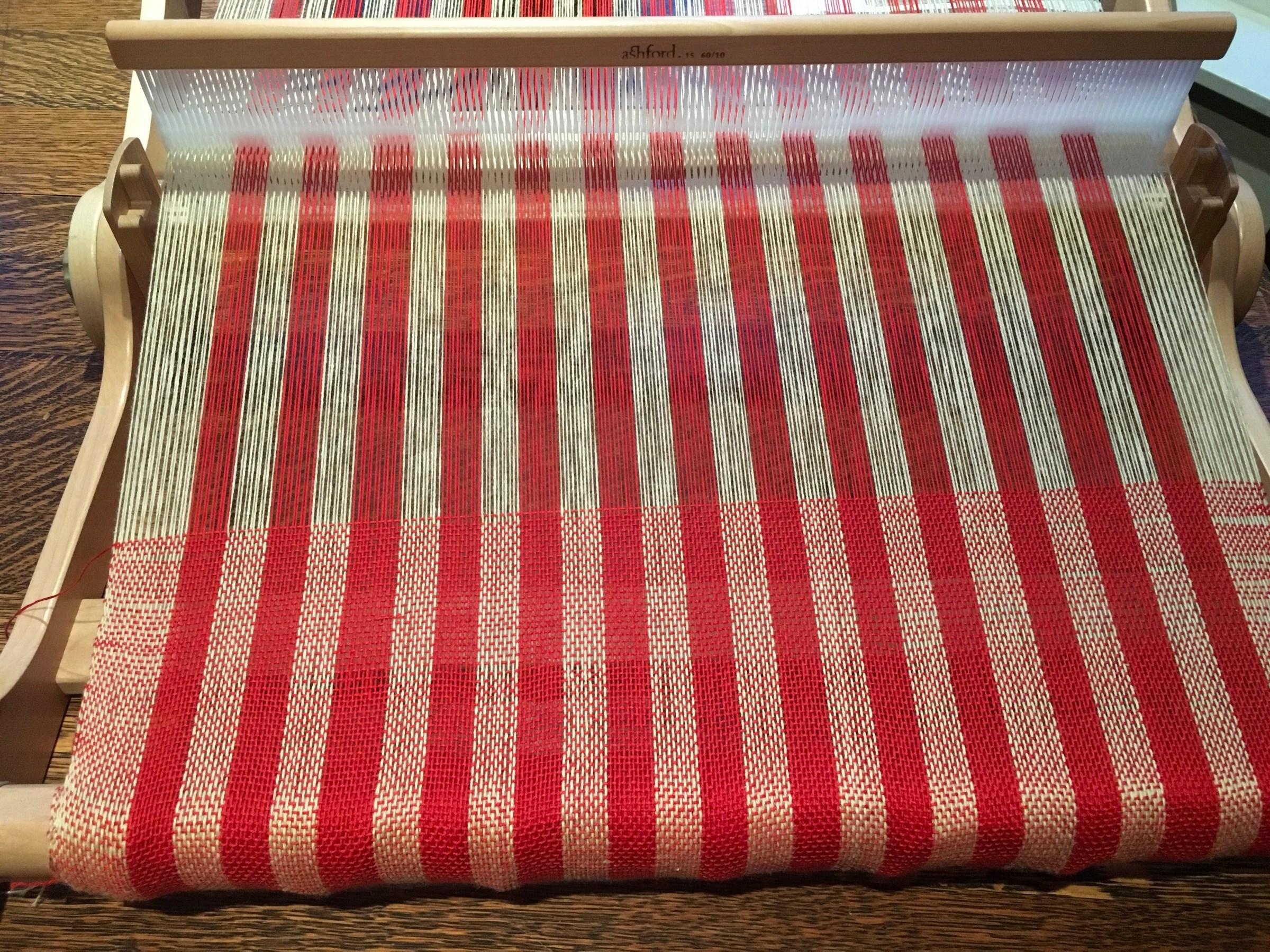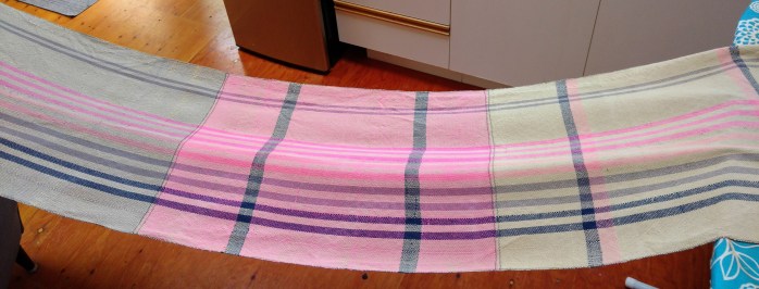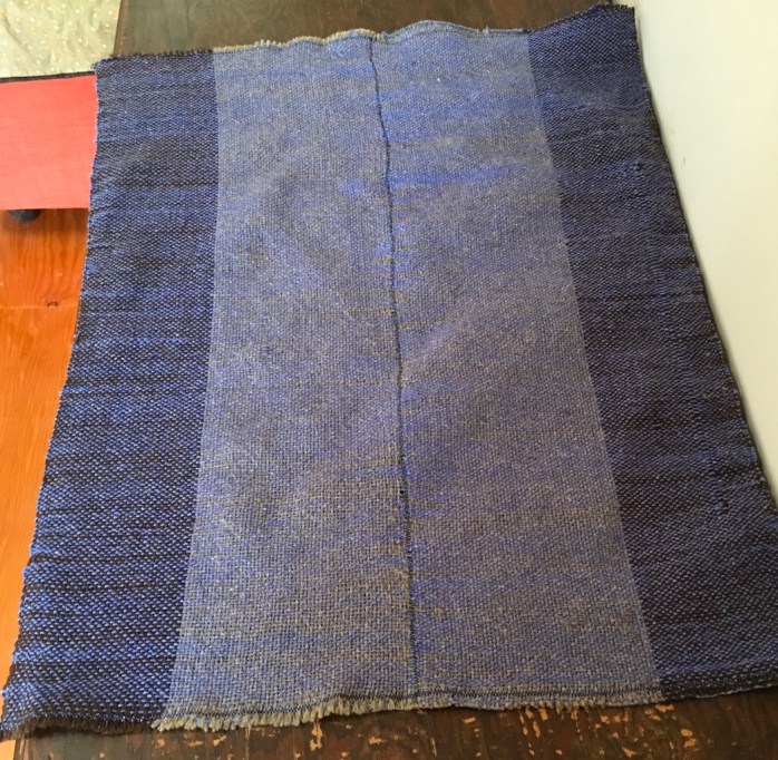 It turns out that some shuttles (the thing with the weft thread in it) are more easily thrown than others. Also, it turns out that sometimes standing is better than sitting. On my 4-shaft J-made loom, these details made all the difference and I’ve completed two different fabrics in the last two days.