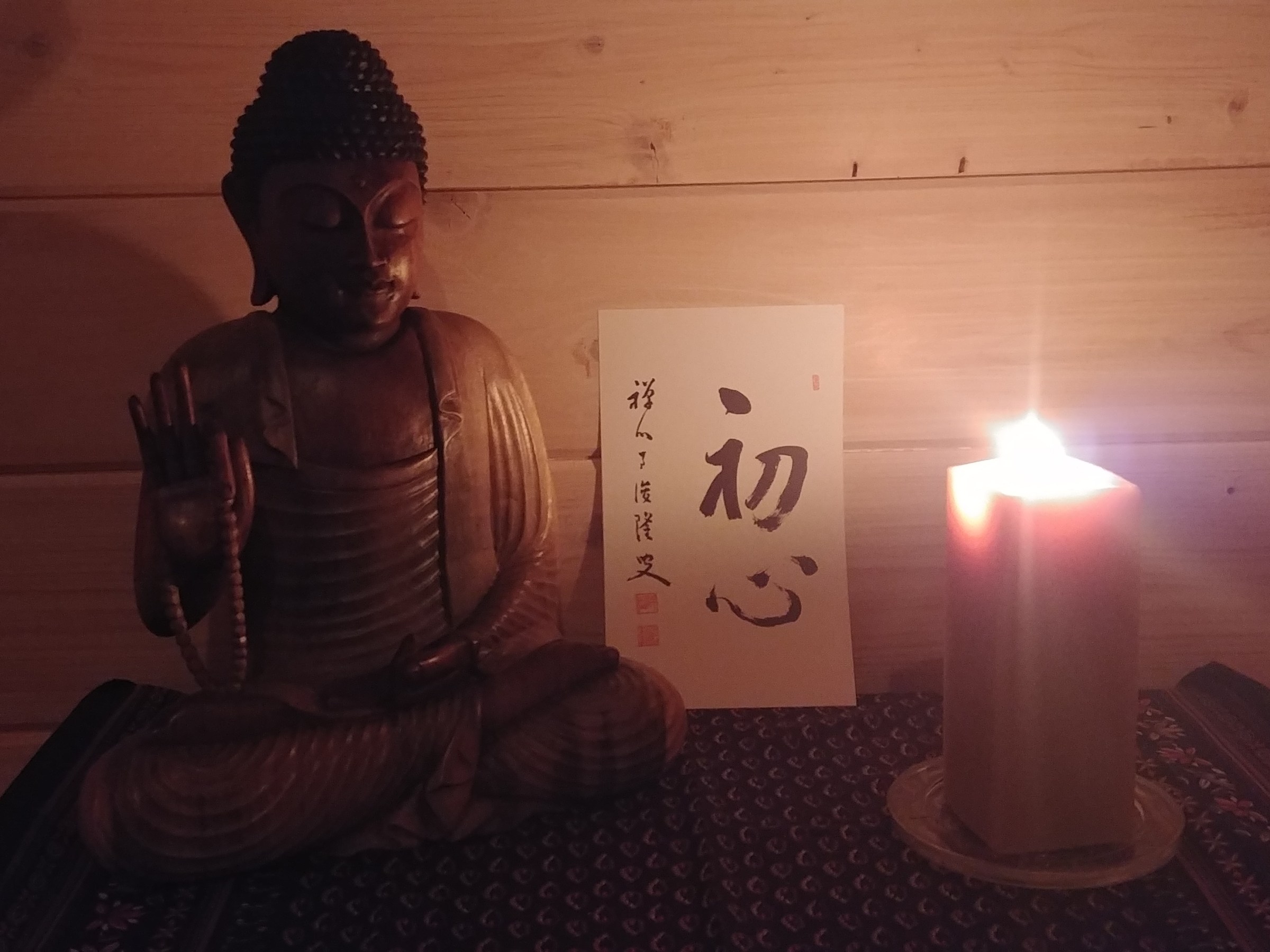 So I’m facing myself in 2018, and I’m back at a daily practice, to which I’ve decided to add a bit more formality and ritual. Last year I added a daily dedication of practice at the end of each sit, in addition to the robe chant at the beginning (since May I have been wearing my jukai robe – the rakusu I completed for my ceremony in March, which necessitates a chant before wearing). This year I am adding four bows before and after practice – one for each of the great vows*, in addition to a weekly recitation of my precept vows.