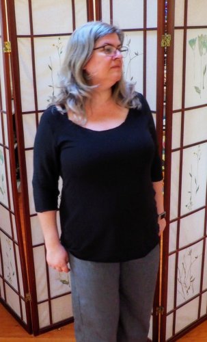 File this one under least-interesting/most useful. It’s a Concord T-shirt, made with some fabric I ordered as a test for another project. It turned out not to be very good quality fabric – but I do need more black t-shirts so here we are. I’ve got better t-shirt fabric in my stash and need to get on some more staples.