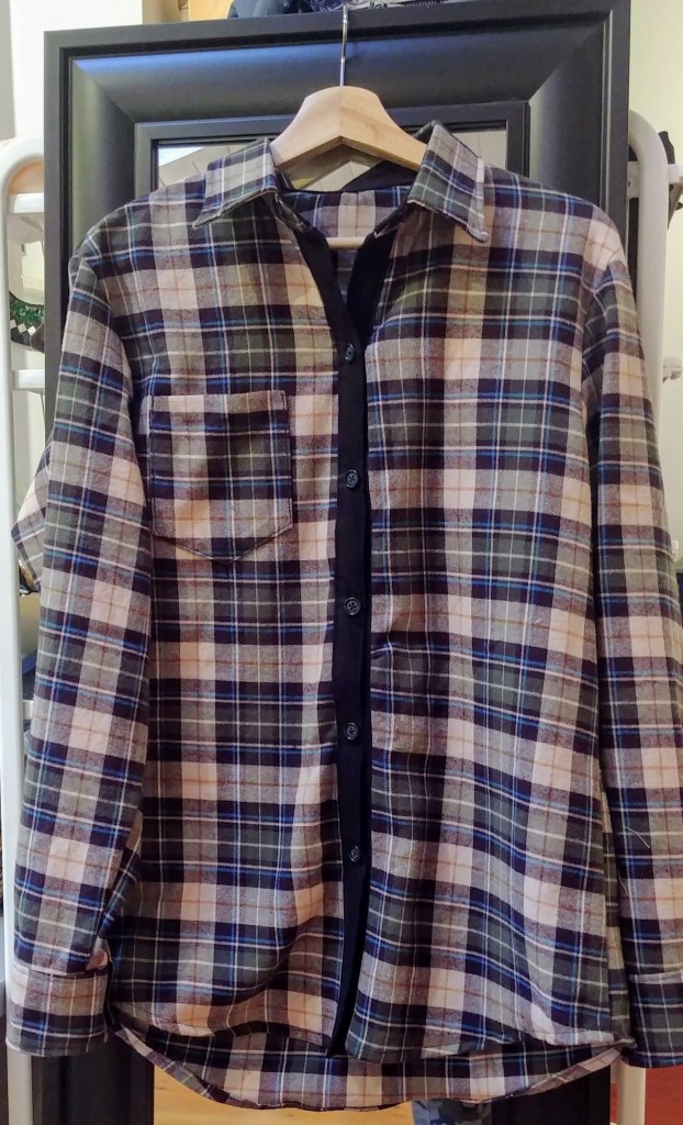 I’ve finished one garment so far – a shirt for Brian which was meant to be a Christmas present. The power outage thwarted my sewing gifts plan (note to self: start earlier next year) so I’m finishing up last year’s sewing now: