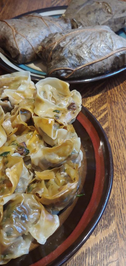 Brian has recently decided that we should be able to have dim sum whenever we want it, so he’s been on a dumpling-making kick. He’s been flash-freezing his treasured creations so that at a moment’s notice he can get out the steamer and serve up a variety of dumplings, rice packets, and barbequed pork – it’s really rather impressive. We had our first dim sum meal on New Year’s Day and holy doodle was it ever good!