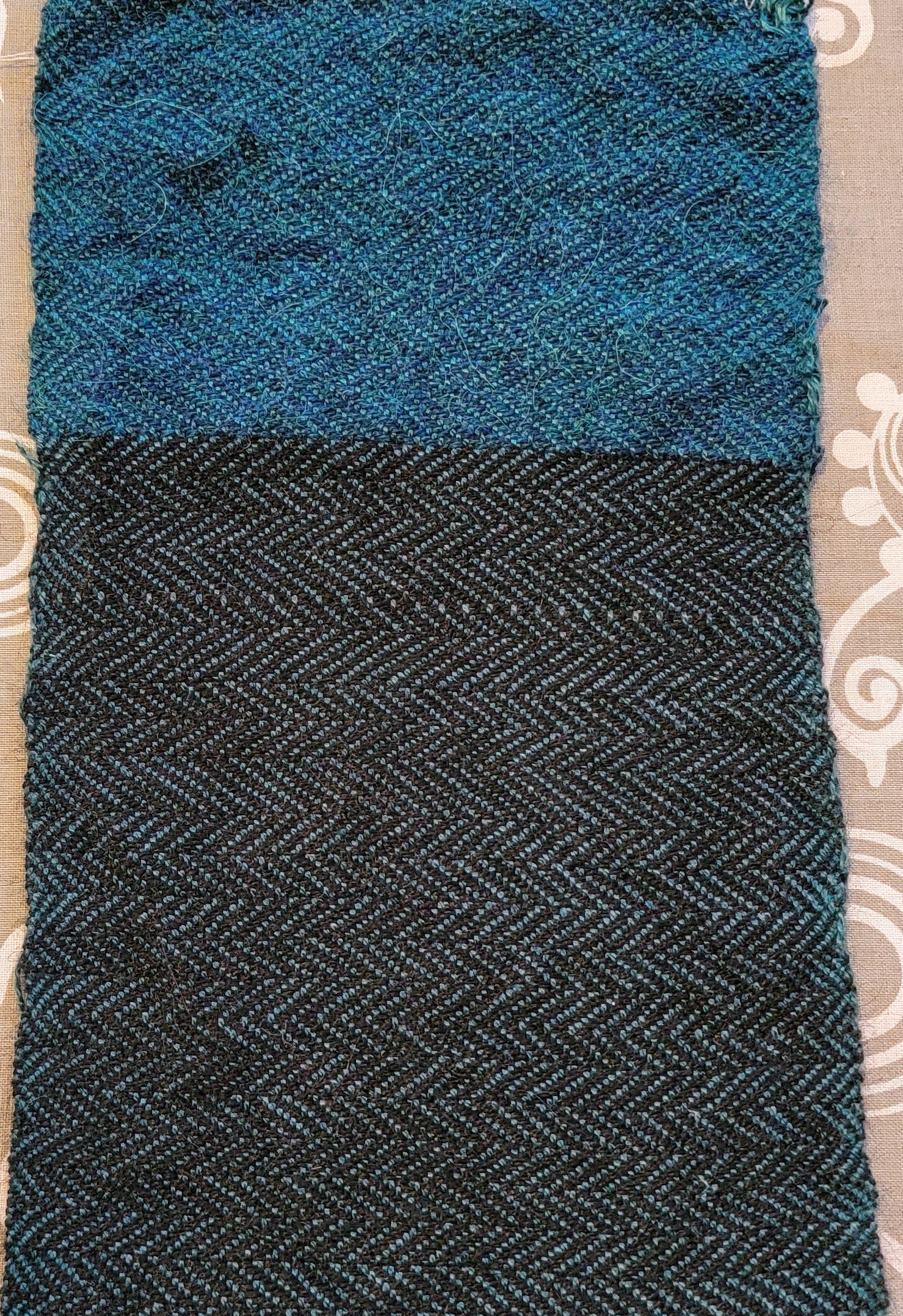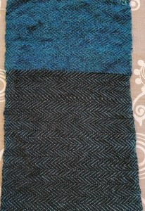 I’ve continued at the loom this week with some sampling. At the start of the year I set an intention to use as much “stash” yarn, fabric, and weaving material as possible. I have several projects worth of stuff in my cupboards, and before purchasing more, I’d like to use at least some of what I have. Case in point, I have some beautiful lace weight alpaca yarn in three colours, as well as some tencel yarn (also in three colourways) that I bought for some project that never happened. In the world of making fabric, it’s always a bit of a crapshoot how things are going to work when you put them together, and it’s a lot of work (and wasted material) if you get it wrong – which is why weavers create samples and sample books. My samples this week included using the tencel fibre as a warp (it’s quite strong) with the alpaca fibre as weft, woven at two different setts (densities). I’m quite happy with the result of the less-dense sett woven in a herringbone twill. It has excellent drape and after washing/fulling it is very soft. Once I get the big loom cleared off (it’s got a bathmat on it that I’ve been hung up on weaving due to a problem with how I tied up the treadles) I will be putting the first of the three shawl projects on. In the meantime, I’m warping the small loom with some spring-coloured hand towels this weekend.