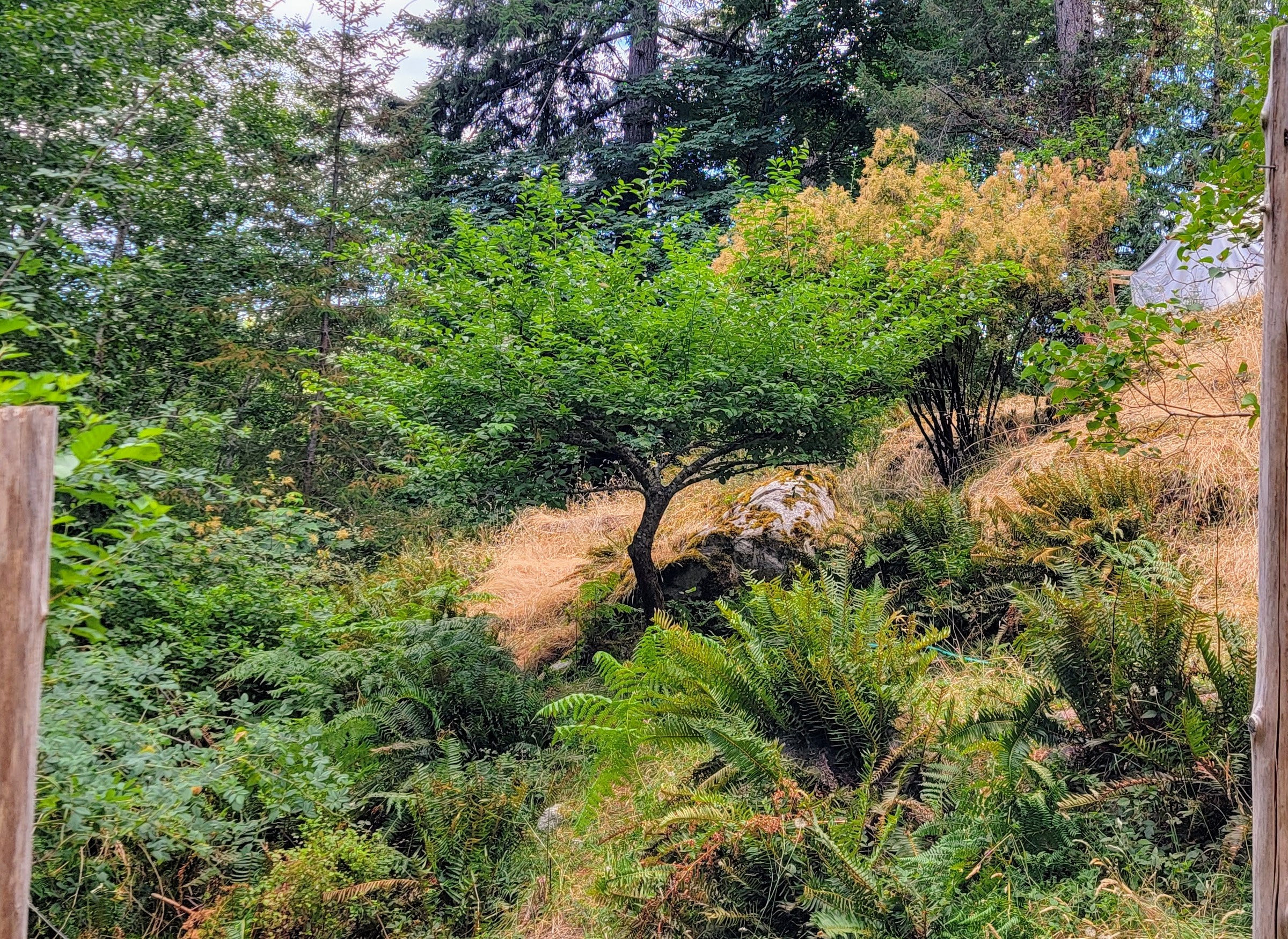 The start of August marks a shift for me. Even though fall is technically weeks away – the month of August begins the dying time, a time of cutting back and simply maintaining what continues to thrive (like the dhalias). In a drought year, I feel it even more, with the lawn reduced to brown dust and the smoky skies. It’s still beautiful here on Gabriola Island and many good swims and outdoor dinners (and concerts) are ahead of us before we truly slip into fall, but it’s dark when I get up in the mornings again and I can’t help but notice the sharpening edge of autumn in the warm air.