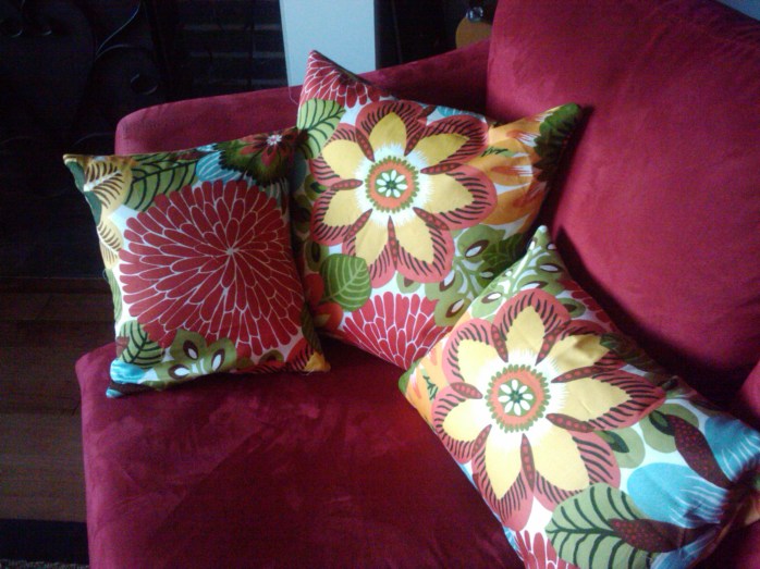 I ended up going for more machine than I had planned for, picking up the Pfaff Expression 2.0 on sale at Sawyer’s in Victoria after Christmas – and I can’t say I’m at all unhappy about my choice. Since I returned home Thursday, I have pieced two quilt tops (baby size – photos to come once they are quilted), and whipped up the above pillows – not to mention a lot of experimentation with my machine. Very exciting! The machine is so much more powerful than anything I’ve had before – and the actual quilting process promises to be a lot easier with integrated top and bottom feed – not to mention the number of quilting stitches available.