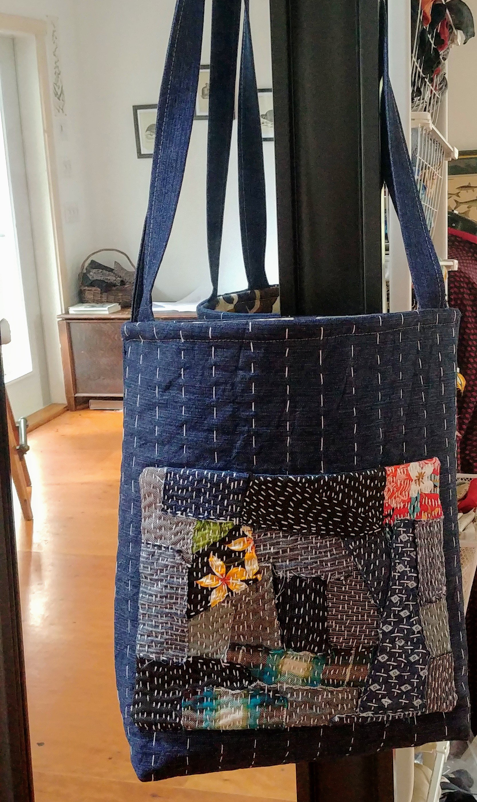 On the weekend I finished a new bag, which has been in the works since the late fall when I hand stitched the outside panels and made the boro piece which is now serving as an outside pocket.
